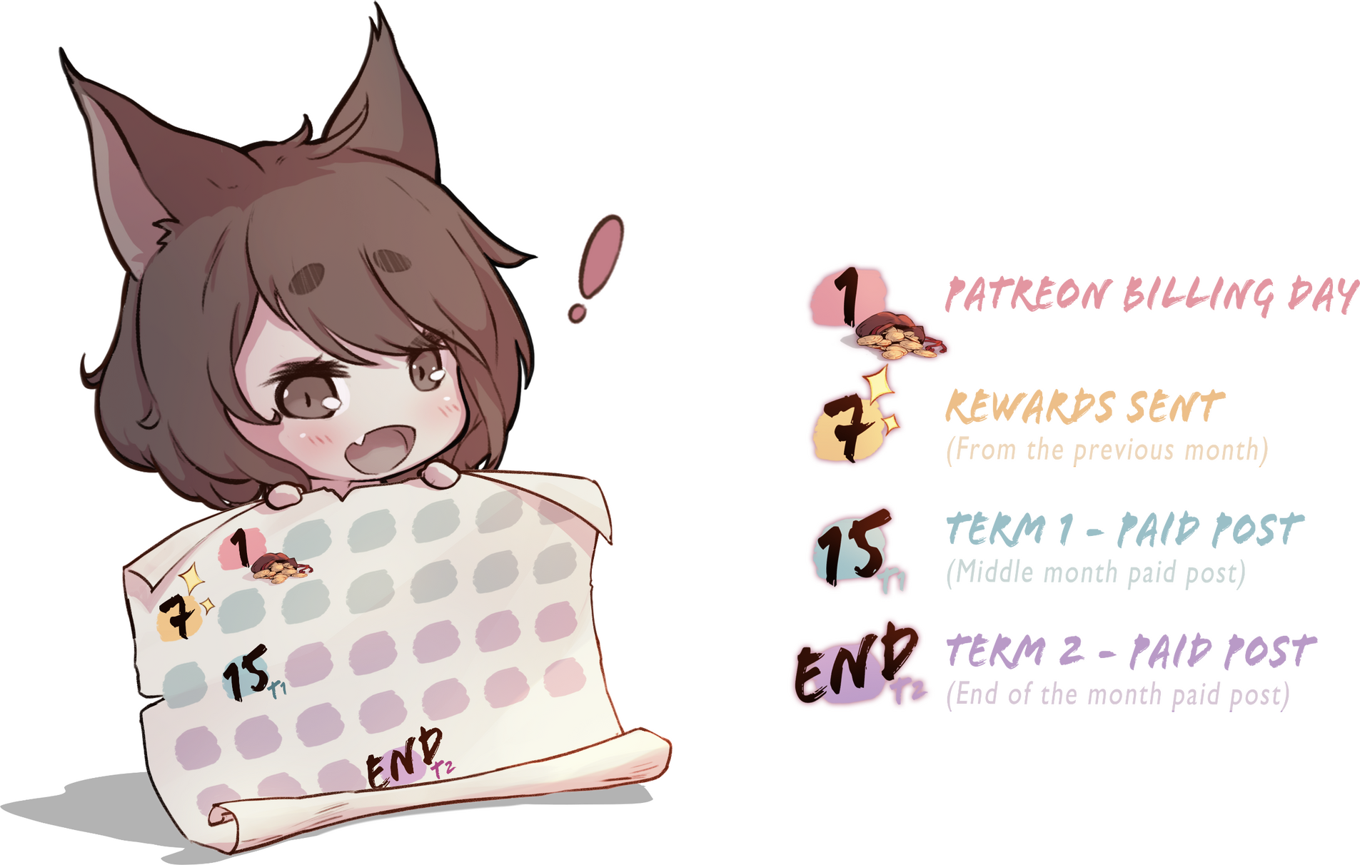 ✦ Patreon bills payments only on the 1st of each month, and processes them between the 1st and 5th of the month.